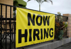 A local pizza restaurant advertises for workers in Encinitas,