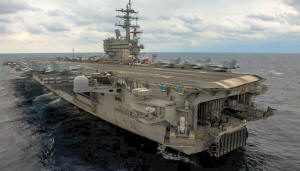 The aircraft carrier USS Ronald Reagan steams the Philippine Sea