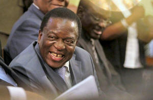 Zimbabwe Vice-President Emmerson Mnangagwa listens as President