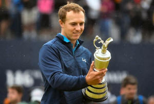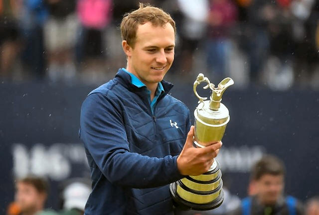 USA's Jordan Spieth celebrates with The Claret Jug after winning The