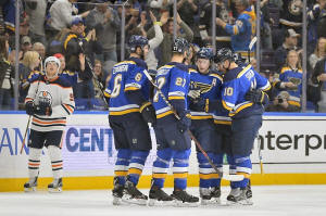 more to lead the Blues to an 8-3 rout of the Oilers.