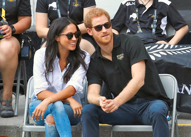 Britain's Prince Harry (R) sits with girlfriend actress Meghan