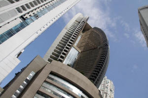 seen between apartment buildings in Panama City, Panama October 11,