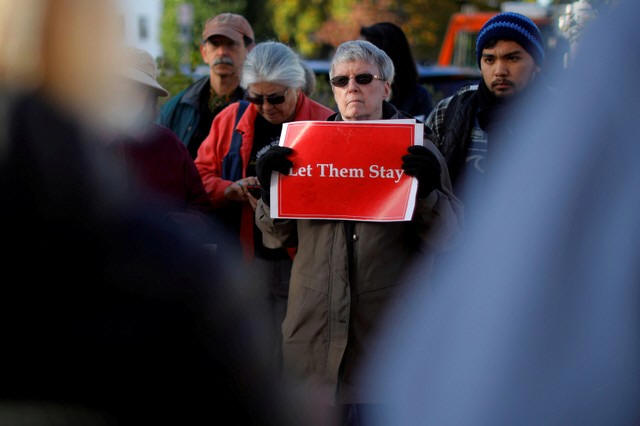 Demonstrators hold an "Interfaith Prayer Vigil for Immigrant