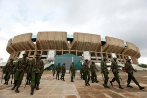 Jubilee party colors and carrying Kenyan flags, filled the stadium