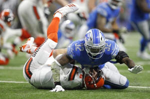Browns quarterback Cody Kessler (6) gets sacked by Detroit Lions