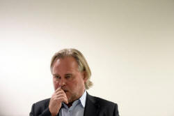 Eugene Kaspersky makes a presentation at a press conference in