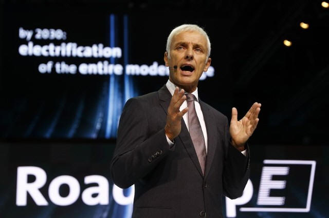 Volkswagen CEO Matthias Mueller attends the opening of the Frankfurt Motor Show (IAA) in Frankfurt, Germany September 11, 2017. REUTERS/Kai Pfaffenbach |