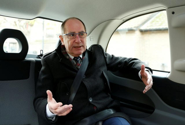 London Electric Vehicle Company (LEVC) Chief Executive Chris Gubbey rides in one of the company's electric cabs during an interview with Reuters in London, Britain, November 29, 2017. REUTERS/Darrin Zammit Lupi |