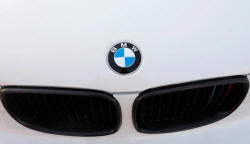 A BMW logo is seen on a car at the International Auto Show in Mexico