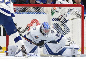 Tampa Bay Lightning goalie Andrei Vasilevskiy (88) makes a pad save