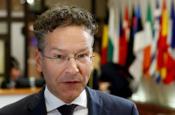 and Eurogroup President Jeroen Dijsselbloem arrives at Eurozone