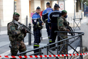 station after French soldiers shot and killed a man who stabbed two