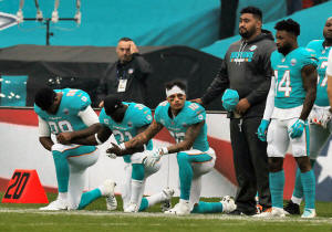 on Sunday, three members of the Miami Dolphins knelt as U.S. singer
