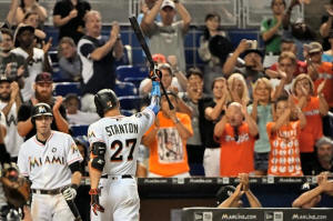 Giancarlo Stanton had two hits and one RBI, but failed to hit his