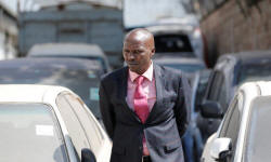 Auctioneer George Muiruri, inspects vehicles before their auction at