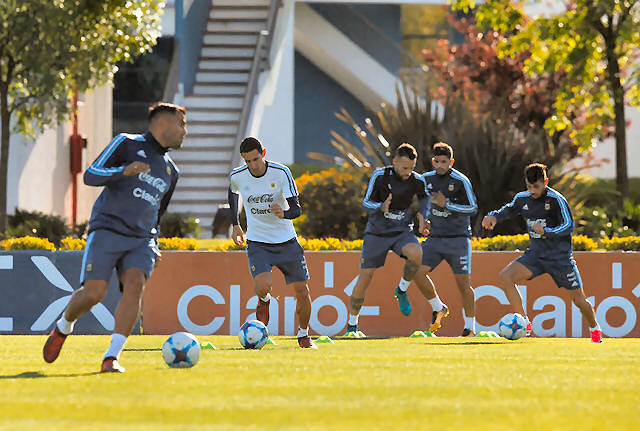 Argentina's players attend a training session ahead of their match