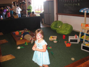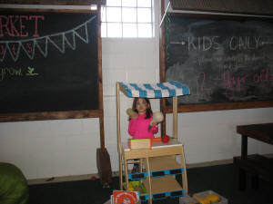 In the children's play area, some were pretending to grow and sell fresh produce.