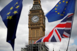 Tower, housing the Big Ben bell, during the anti-Brexit 'People's