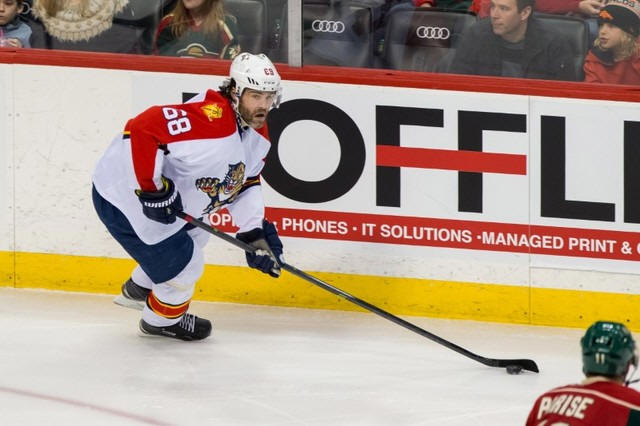 Florida Panthers forward Jaromir Jagr (68) skates with the puck in