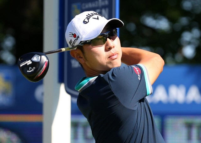 Sang-moon Bae (South Korea) tees off on the tenth tee box in the