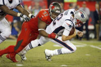 Buccaneers defensive tackle Gerald McCoy (93) sacks New England