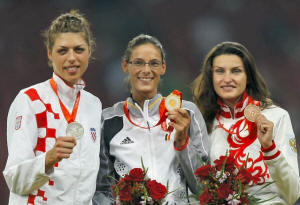 Women's high jump medallists (L-R) Blanka Vlasic of Croatia