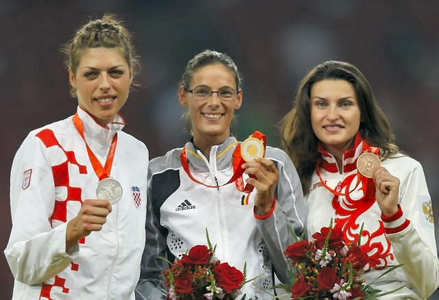 (silver), Tia Hellebaut of Belgium (gold) and Anna Chicherova of