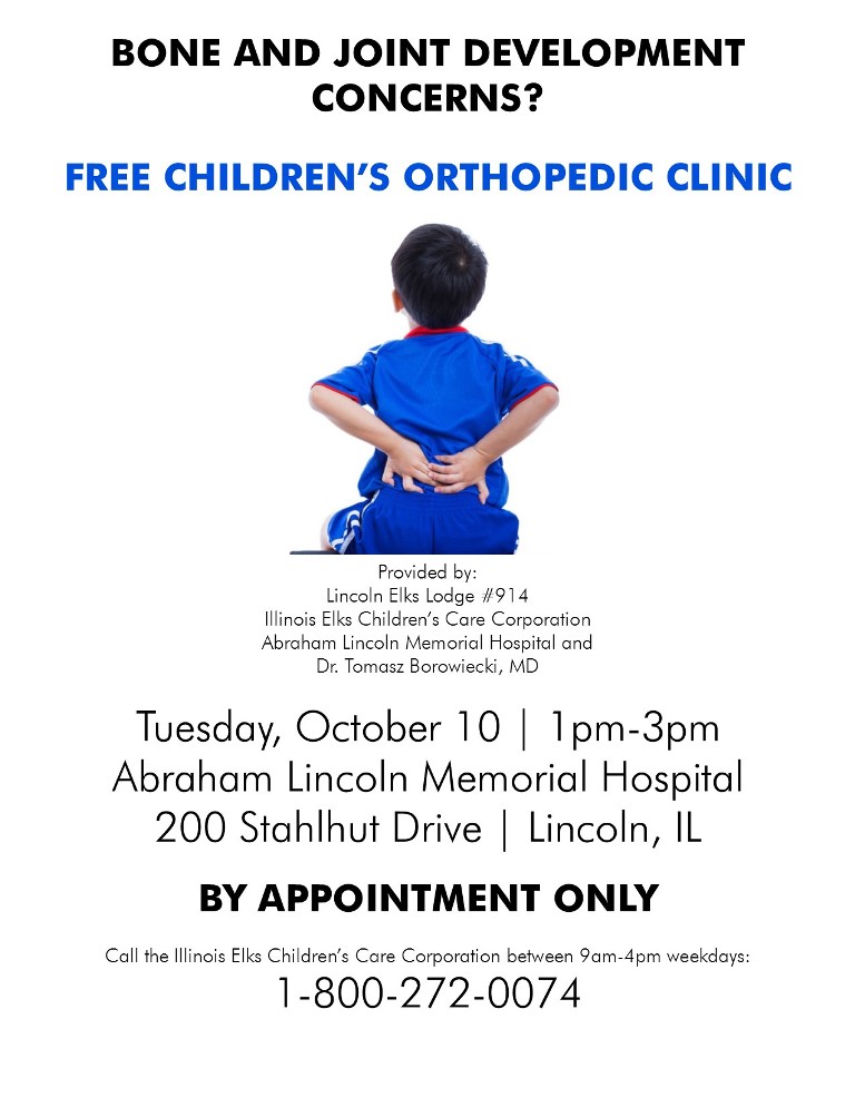 Lincoln, IL. To make an appointment for the clinic, call the Illinois Elks