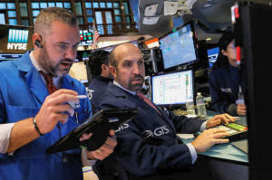 Traders work on the floor of the New York Stock Exchange (NYSE) in