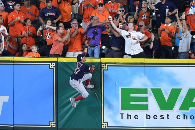 Oct 6, 2017; Houston, TX, USA; Fans attempt to catch the home run