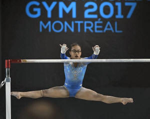 Iordache, a two-time world all-around medalist, tearing her