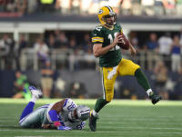 Packers quarterback Aaron Rodgers (12) runs with the ball for a
