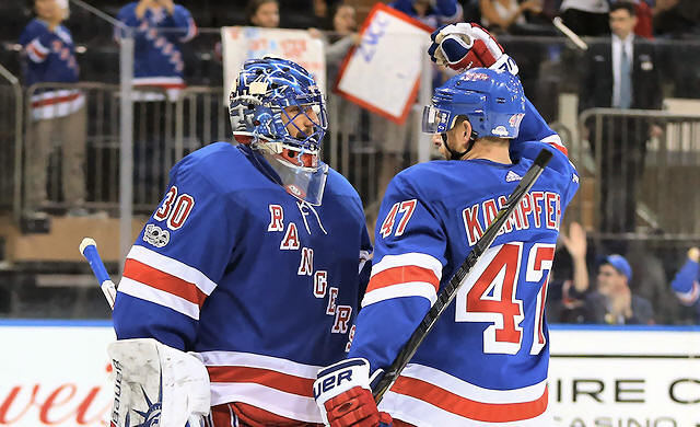 Rangers winning goaltender Henrik Lundqvist (30) is