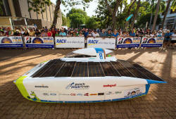 The solar vehicle for the team called 'Punch 2' prepares to start