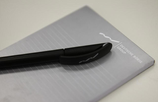 A notebook with the logo of Deutsche Boerse Group (German stock