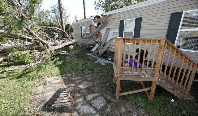 by a falling tree in the wake of Hurricane Irma in Kissimmee,