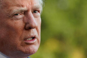 President Donald Trump talks to the media on South Lawn of the White