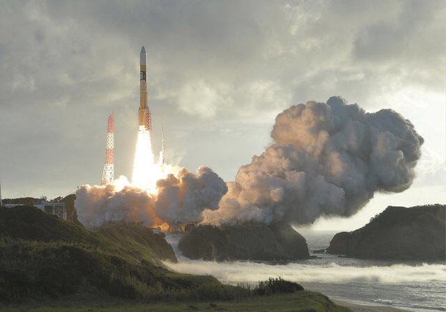 An H-2A rocket carrying Japan's fourth and final quasi-zenith satellite, the Michibiki No. 4, lifts off from the Tanegashima Space Center in Kagoshima Prefecture, southwestern Japan in this photo taken by Kyodo on October 10, 2017. Mandatory credit Kyodo/via REUTERS |