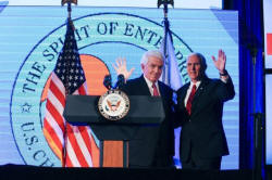 U. S. Vice President Mike Pence greets Thomas Donohue, president and