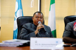 OPEC Secretary General Mohammed Barkindo speaks to the media during