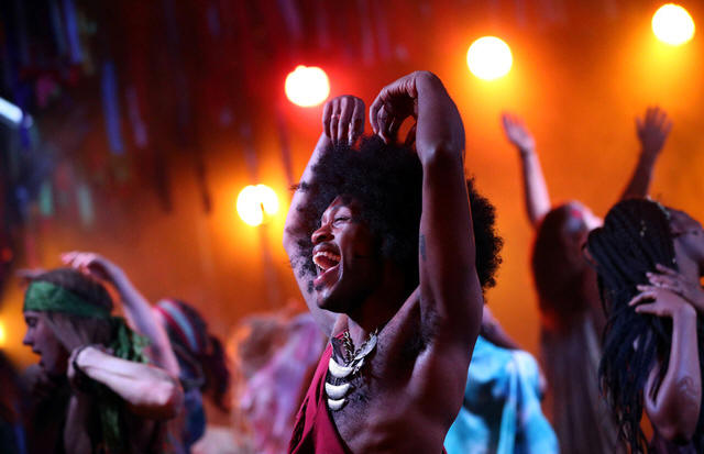 members perform during a rehearsal of Hair at The