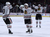 Patrick Sharp (10) after scoring a goal against the Montreal