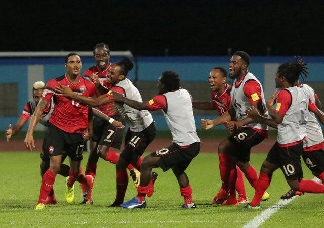 Trinidad's Alvin Jones celebrates his goal with team mates.