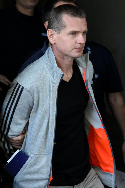 officers while leaving a court in Thessaloniki, Greece, October 11,