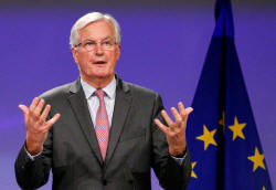 European Union's chief Brexit negotiator Michel Barnier holds a
