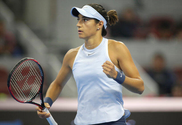 Caroline Garcia of France reacts. REUTERS/Jason Lee