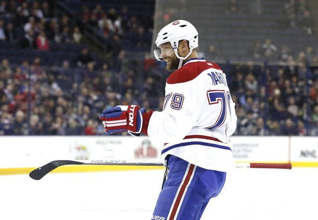 Canadiens defenseman Andrei Markov (79) celebrates after scoring a