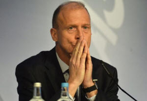 Airbus Group Chief Executive Tom Enders listens during a news