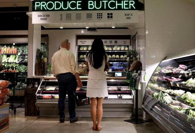 Customers shop at a Whole Foods store in New York City, U.S.,